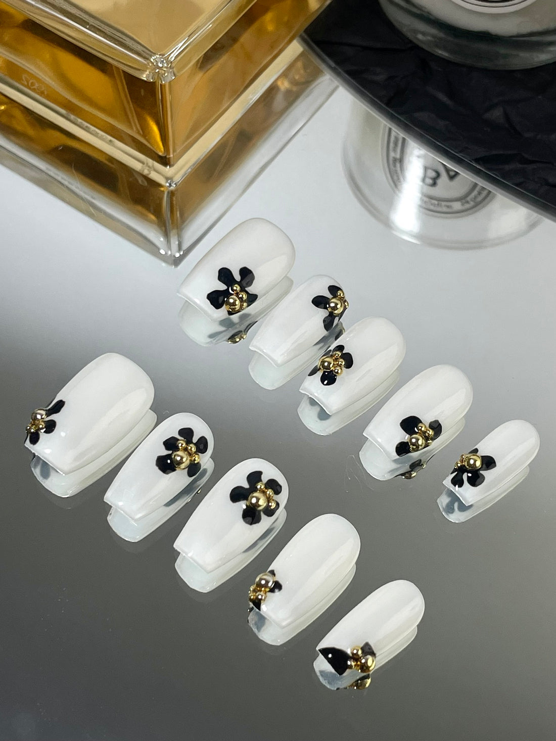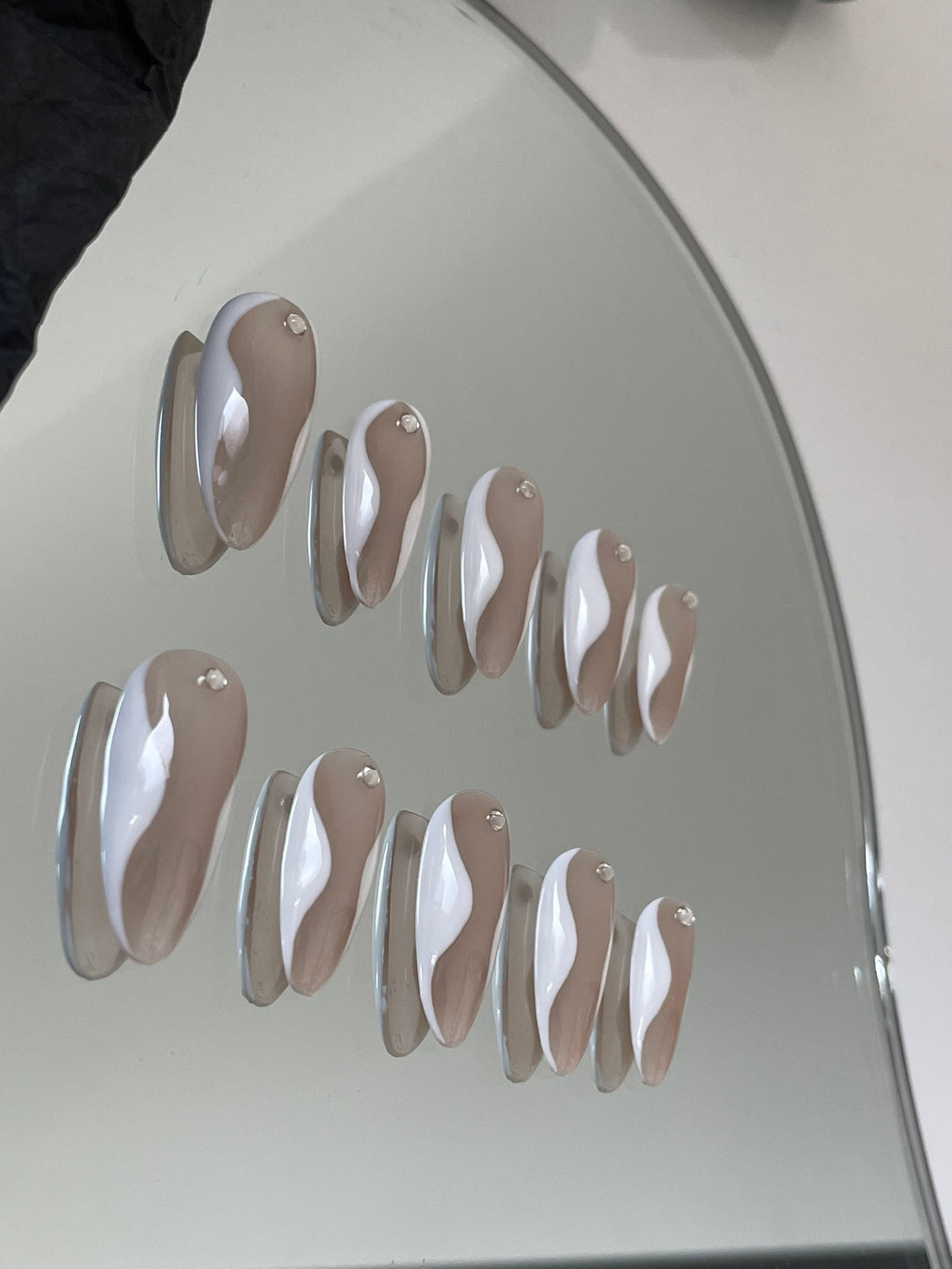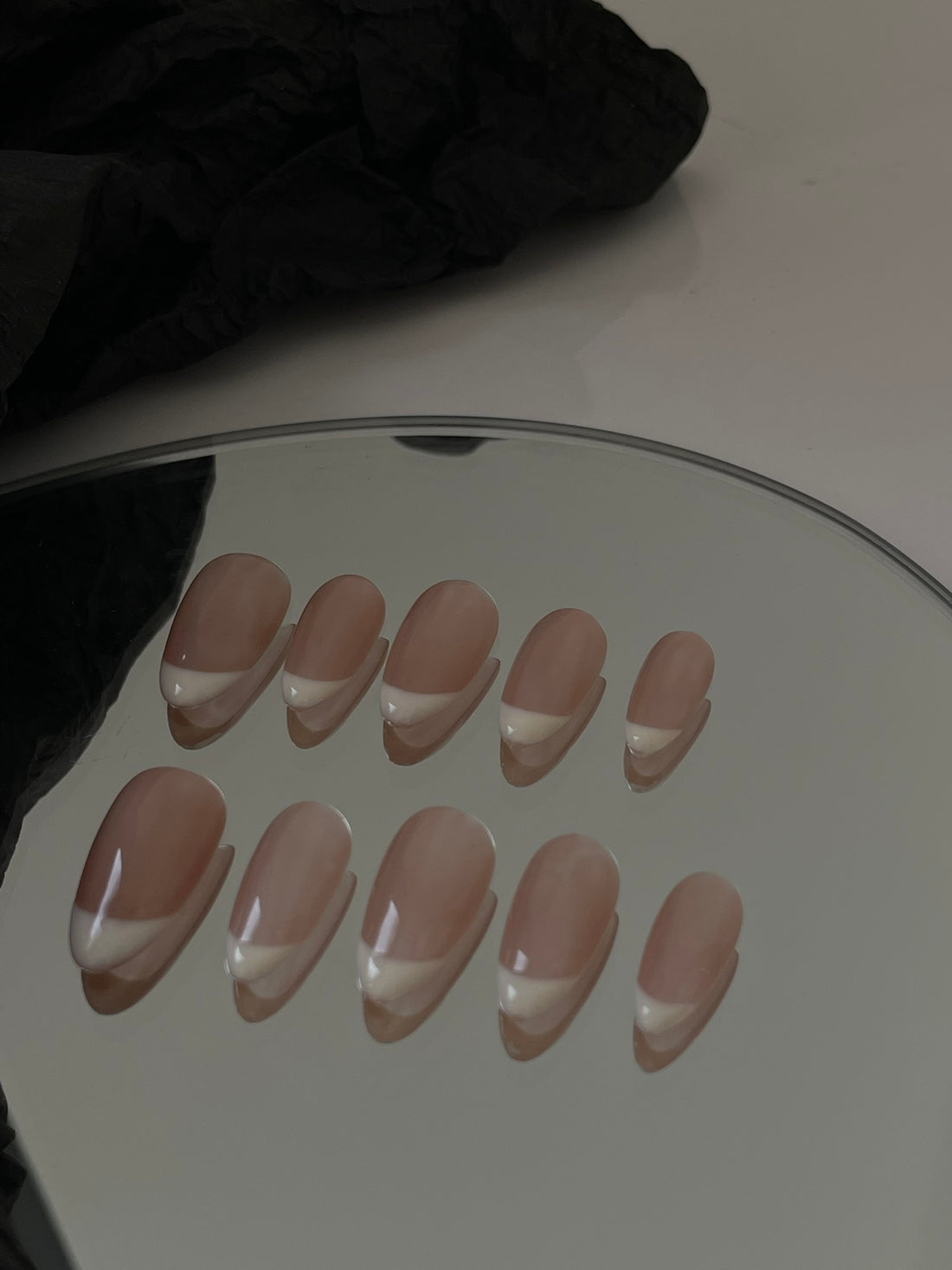 Hand-made Press-on nails with white tips ( Do not touch water in 2 hours)
