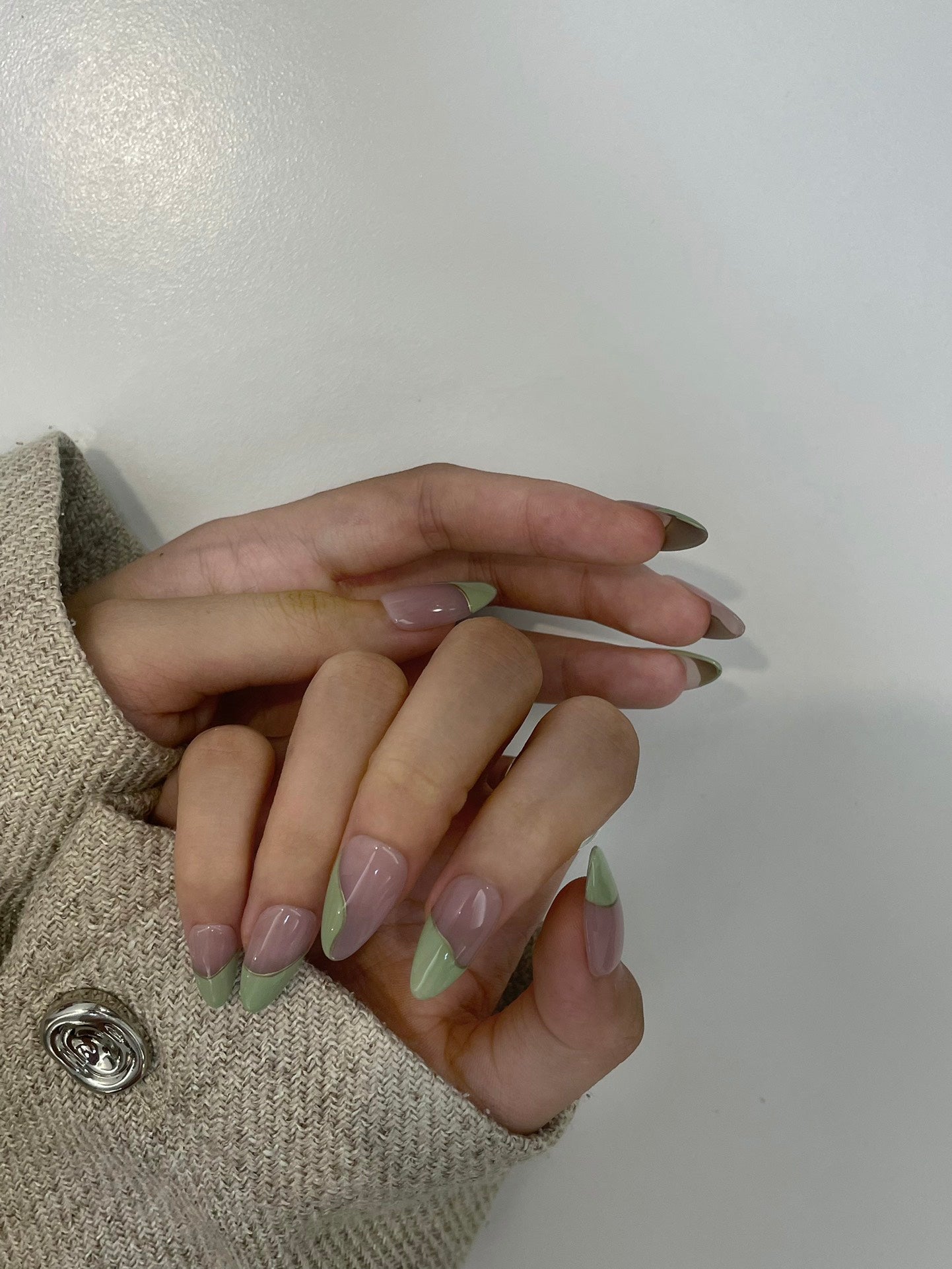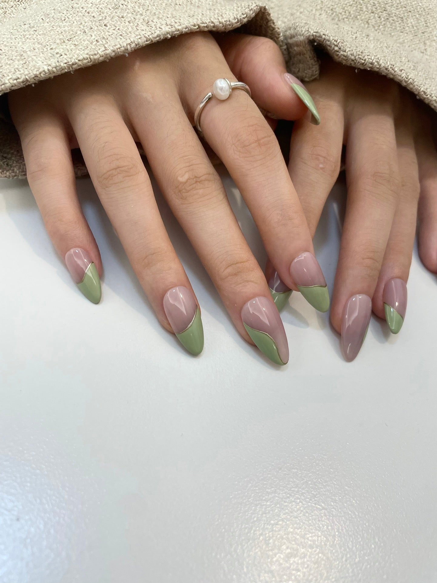 French Nails with Green Tip