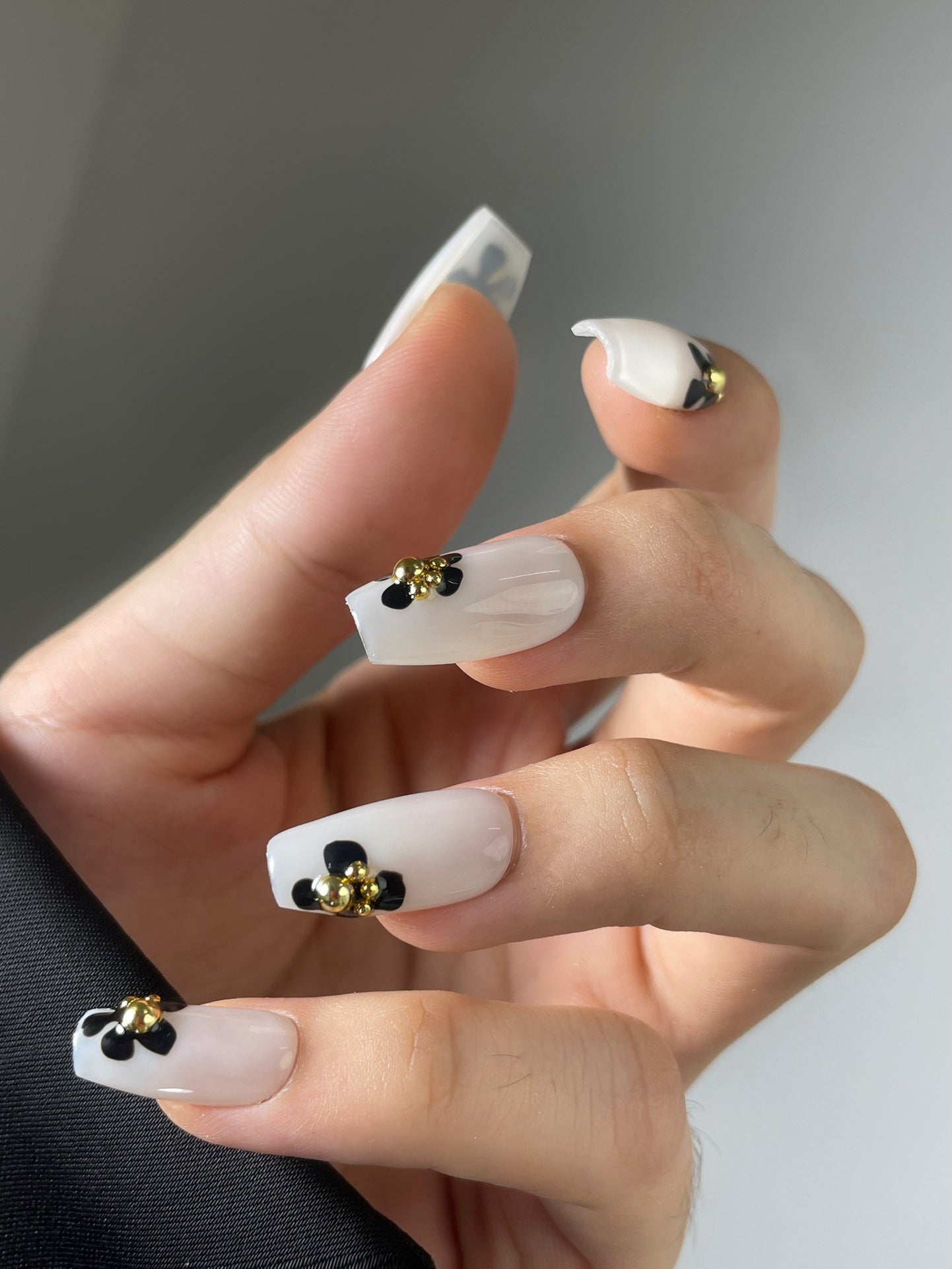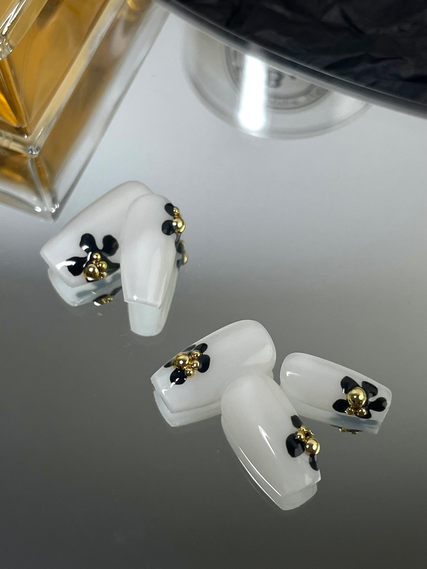 Presson nails with flowers Tool Bag included (Nail Filer, Alcohol Pads, Jelly Glue, etc)(Free Shipping) Do not touch water for 3 hours after pressing on the nails!