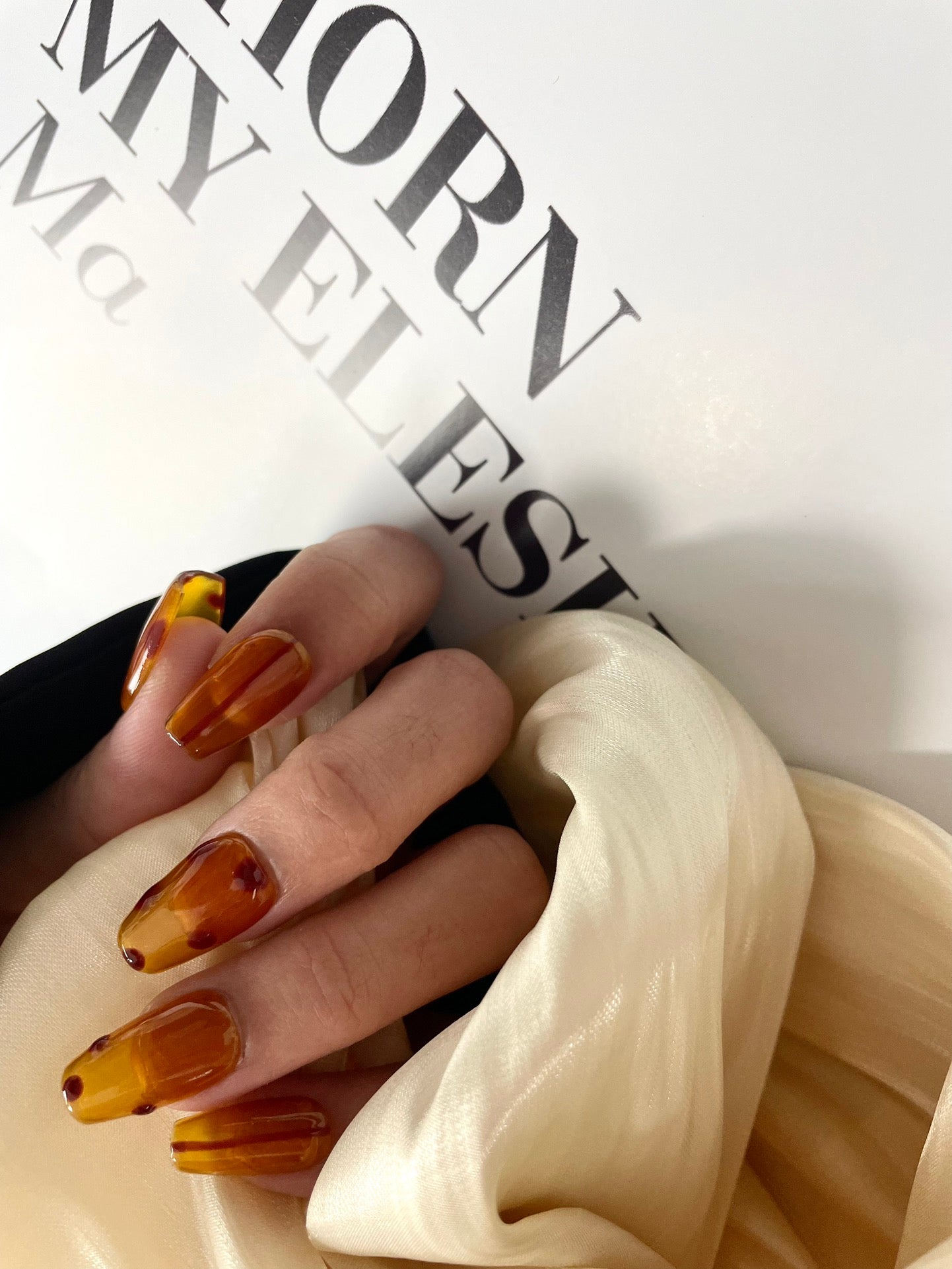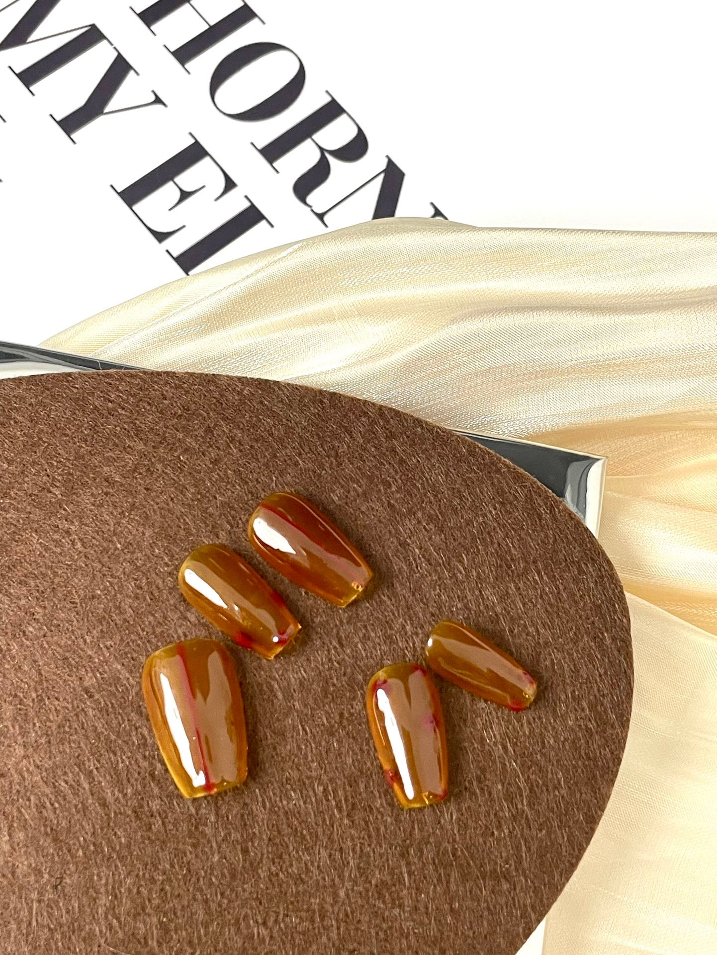 Transparent Light Brown French Nails Tool Bag included (Nail Filer, Alcohol Pads, Jelly Glue, etc)(Free Shipping) Do not touch water for 3 hours after pressing on the nails!