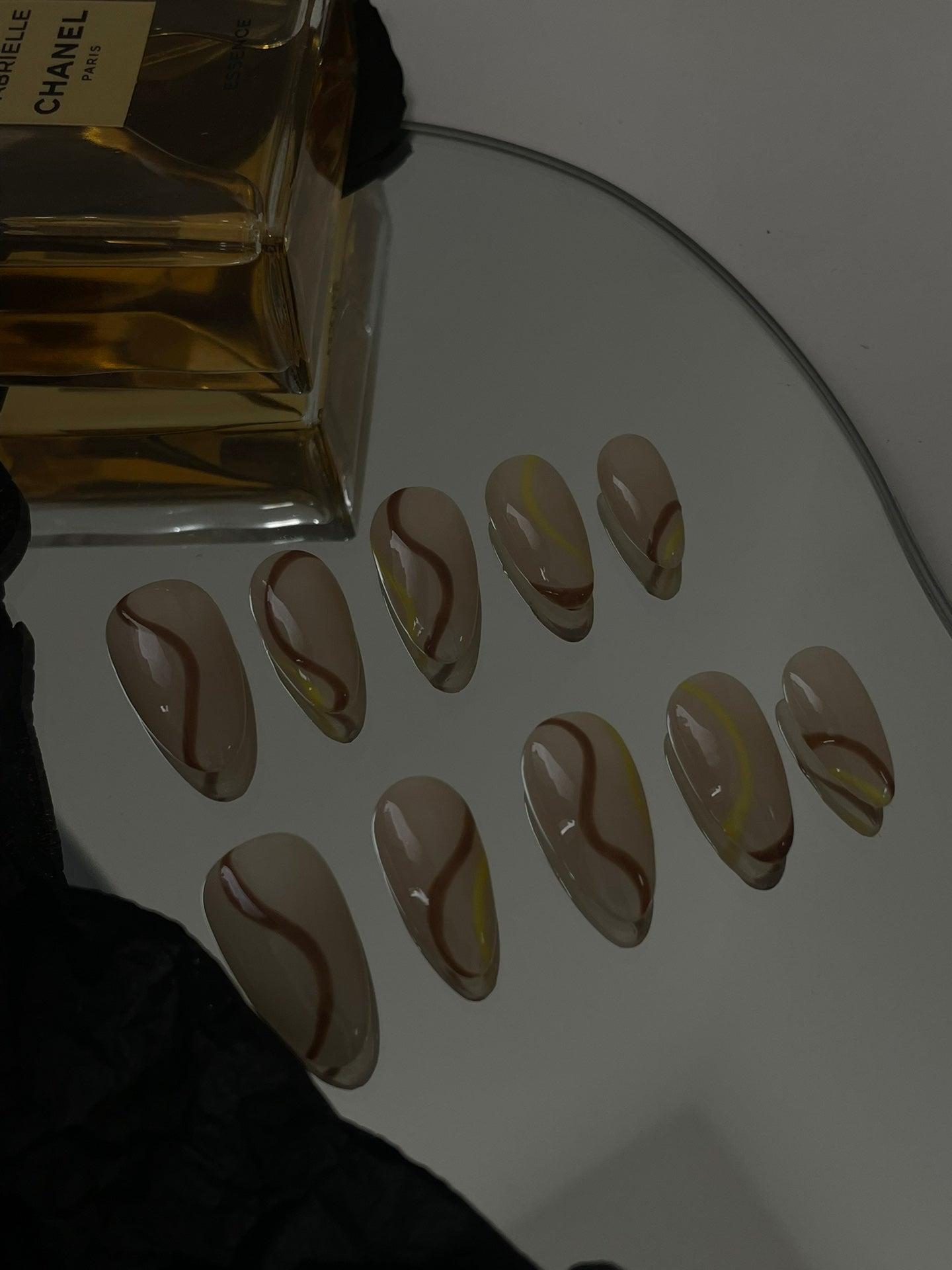 Unique Pattern Oval Presson Nails Tool Bag included (Nail Filer, Alcohol Pads, Jelly Glue, etc)(Free Shipping) Do not touch water for 3 hours after pressing on the nails!
